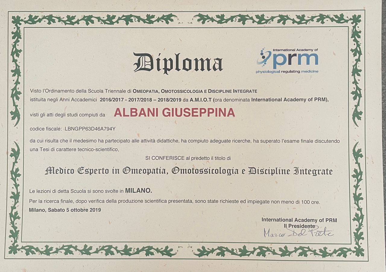 - Diploma in Omeopatia, Omotossicologia e Discipline Integrate
